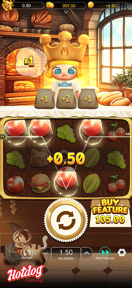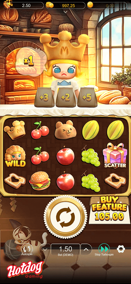 Bake delicious cakes with Molly and enjoy multipliers that can lead to massive wins up to 5000x with various multiplier features!