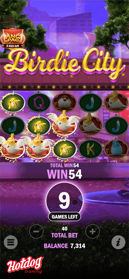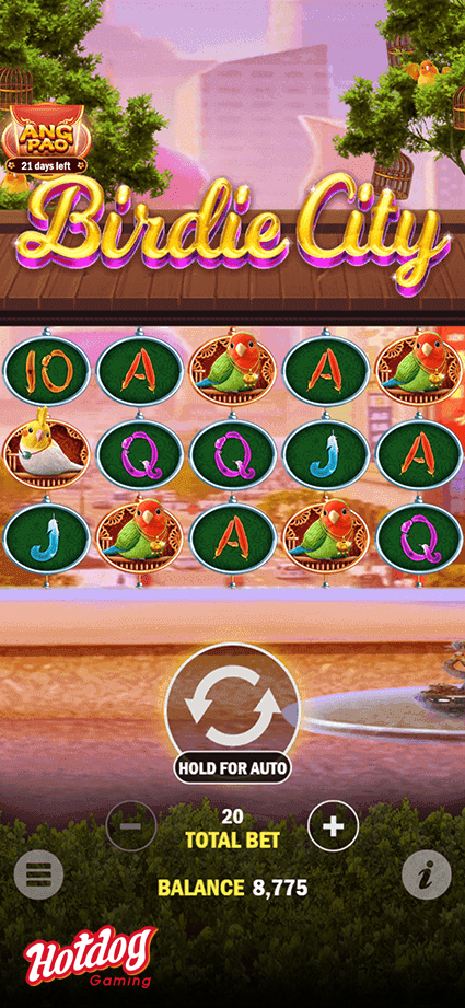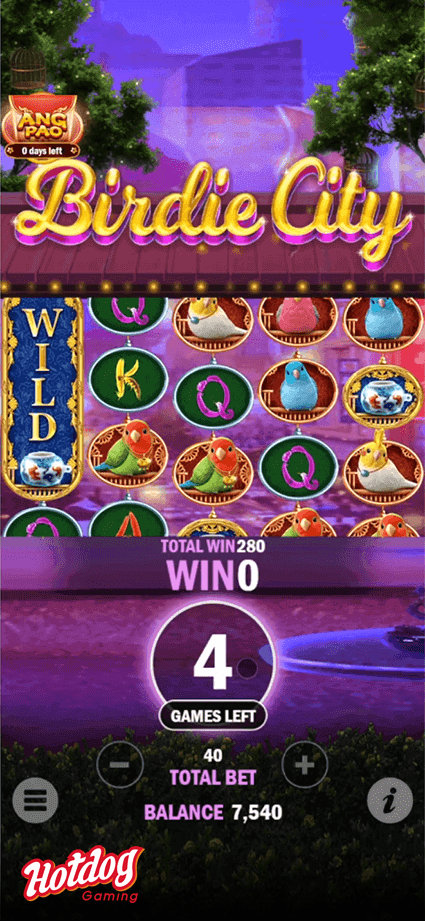 Welcome to Birdie City, and win big with beautiful birds! Fully landed stacked wild in Free Game will be rewarded with extra Free Spins!