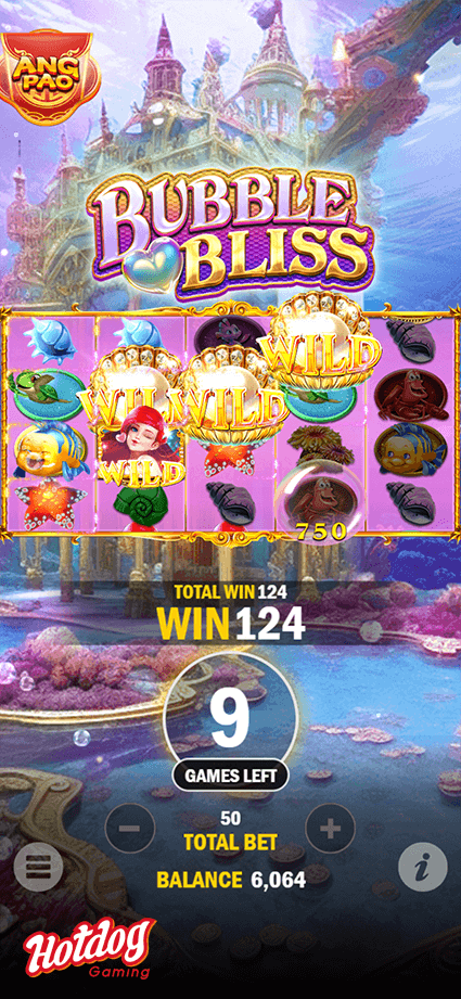 Bubble Bliss will blow you a mermaid kiss of fortune. The slot features Payout bubble and a Free game with sticky Wild. Many Riches await you under the sea!