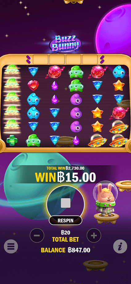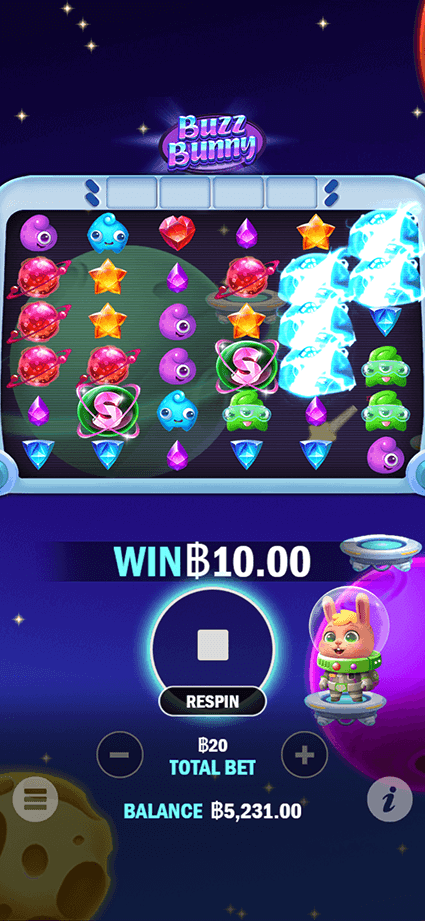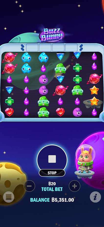 Follow the adventures of Buzz Bunny, as he gets amazing wins when he explores the galaxy with booster rocket triggers, but be careful of the Blackhole!