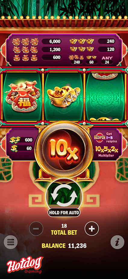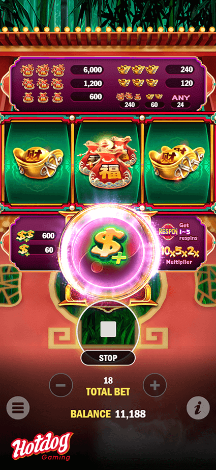 Search the fortune pouch to win up to 333x total bet. The game also features a reward reel that includes Win Multiplier, Scatter Payout, and Bonus Re-spin Game. Don't miss out on this opportunistic chance to strike big!