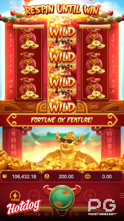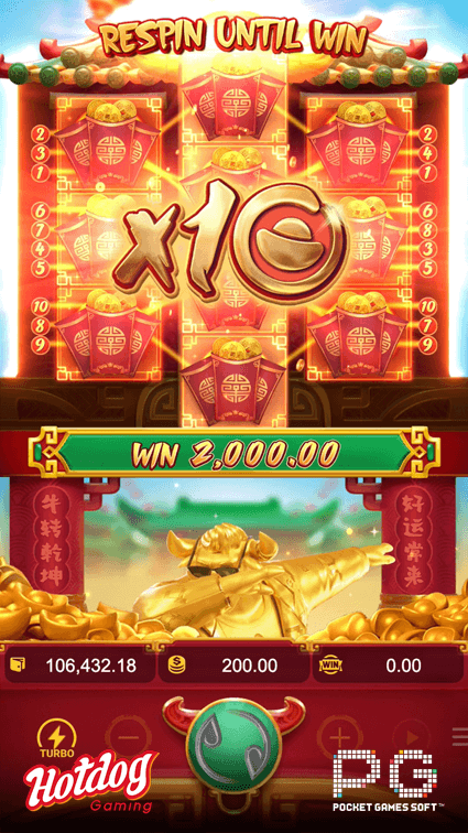 Fortune Ox Feature may be randomly triggered and all reels will respin until there is a win when the first and third reel to share the same symbols! Win x10 wins with full reels win as well!