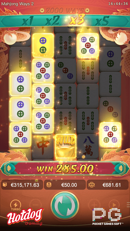 Trigger the Free Spins Feature and be rewarded with additional multiplier of up to x10! Winning golden Mahjong symbols will be converted into wild symbols as well!
