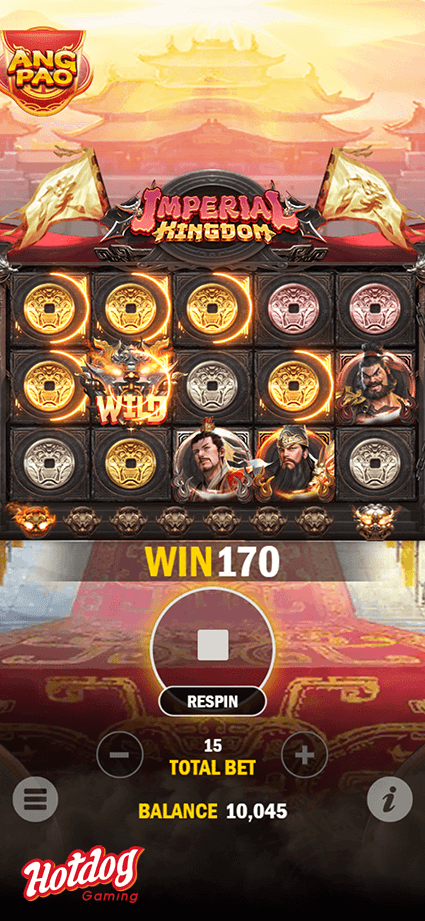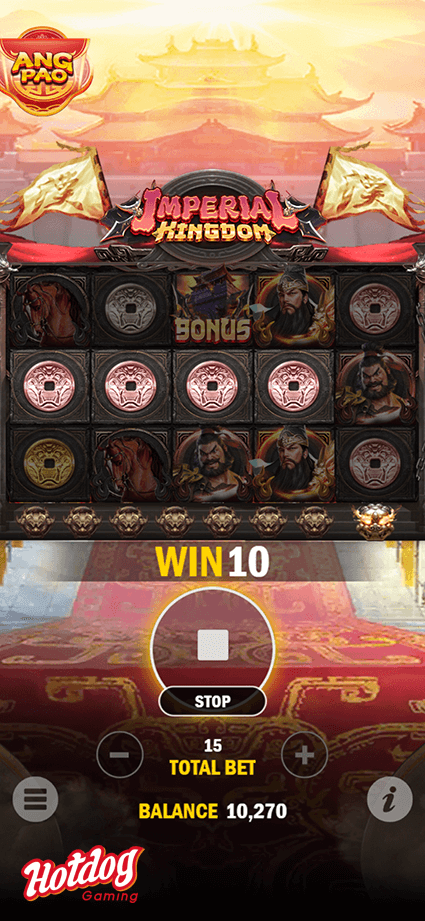 The Kingdom is in war, the victor will enjoy the spoil of war! Imperial Kingdom feature an epic Bonus Game where player siege the enemy, the 3 General also appear to help the player with random Wilds in Free Game.