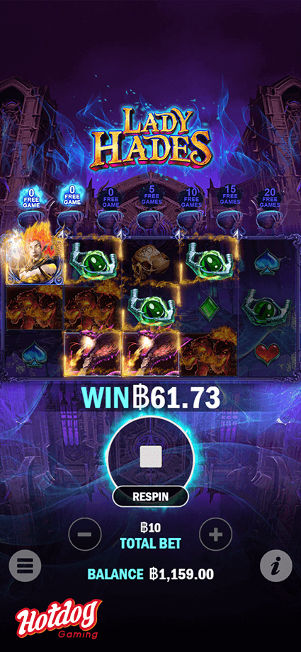 Welcome to the realm of the dead, Lady Hades” invites you for a chance at winning unlimited riches in the Free Game with crazy Stacked Wild.