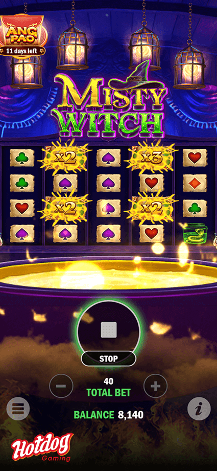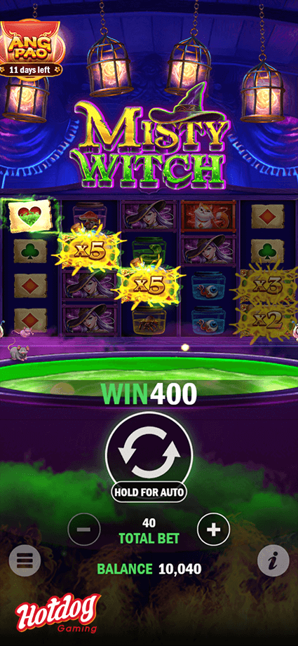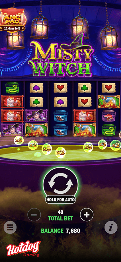 Help the great Misty Witch to brew her intoxicating potion and get rewarded with crazy payouts! Beware of the grumpy cat!