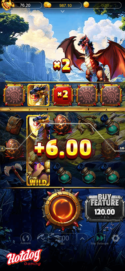 Enter the world of dragon hunting and pursue combinations with 8,000x payouts!! Experience the multiplier rewards of the Golden Dragon wild symbols!!